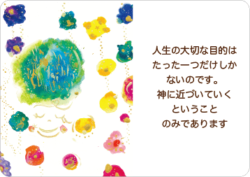 | 6 | ![]() | 人生の大切な目的はたった一つだけしかないのです。神に近づいていくということのみであります | 『自然体で生きよう』 (西園寺昌美) |