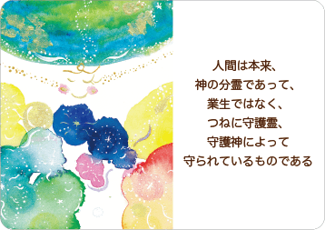 | 5 | ![]() | 人間は本来、神の分霊であって、業生ではなく、つねに守護霊、守護神によって守られているものである | 「人間と真実の生き方」 (教義) |