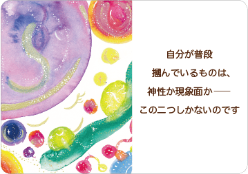 | 19 | ![]() | 自分が普段摑んでいるものは、神性か現象面か——この二つしかないのです | 『つながり合う世界』 (西園寺昌美) |