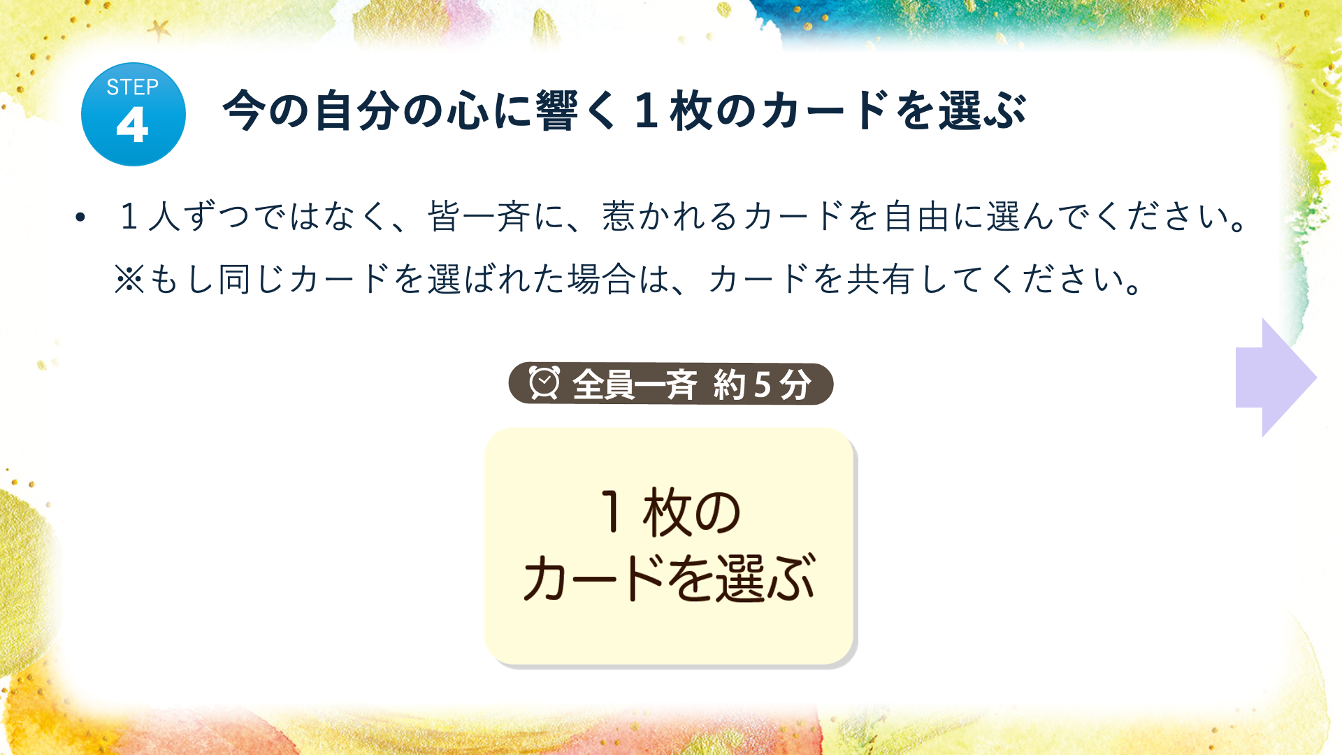 - 3.1.5. 今の自分の心に響く1枚のカードを選ぶ