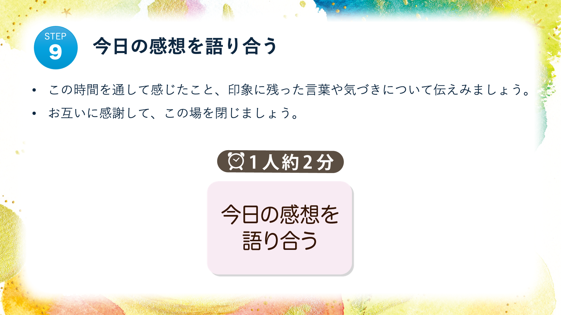 - 3.1.9. 裏面の問いに対する思いや考えを1人ずつ順番に語る